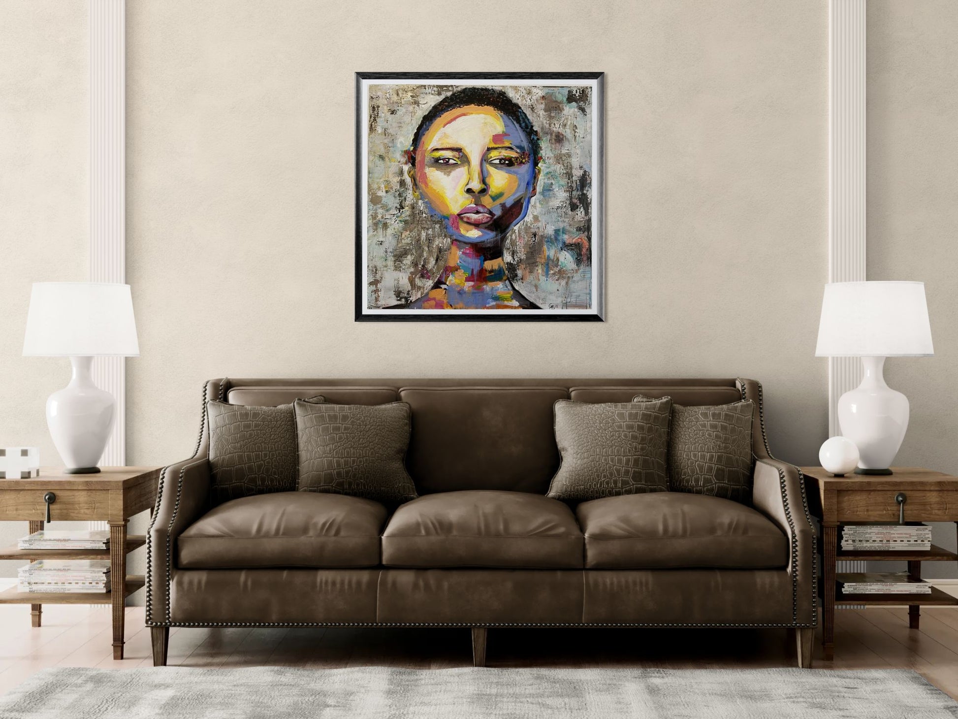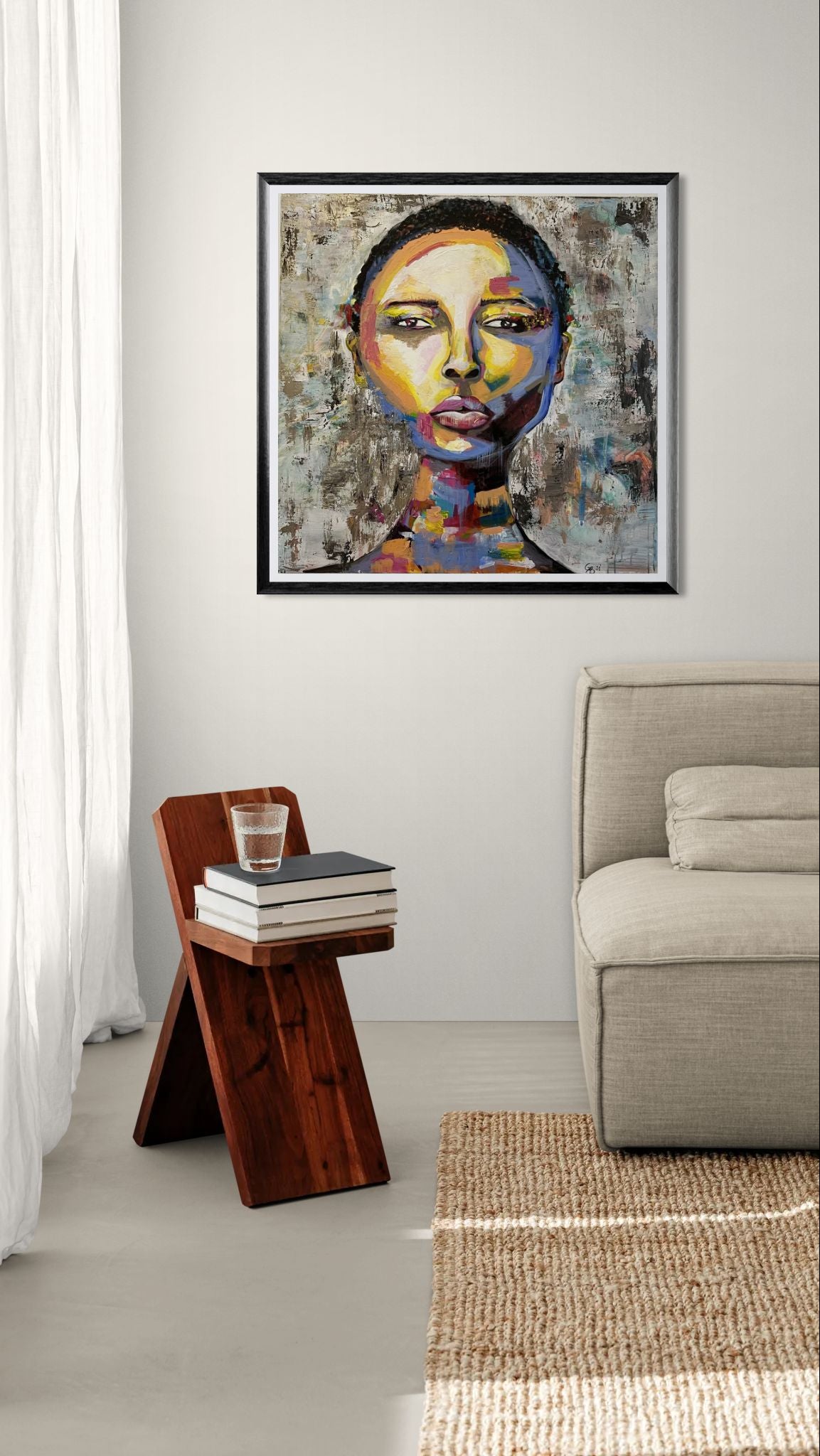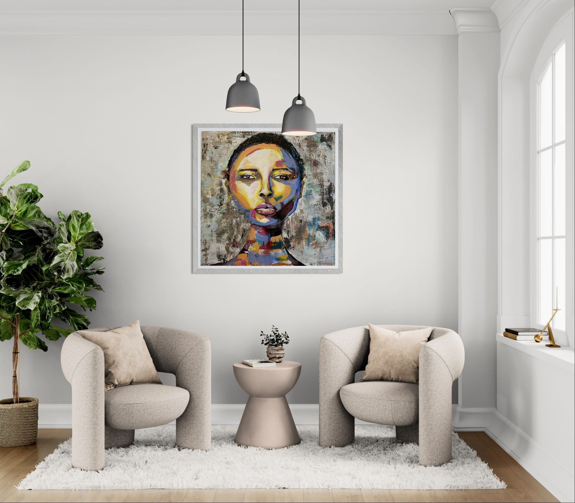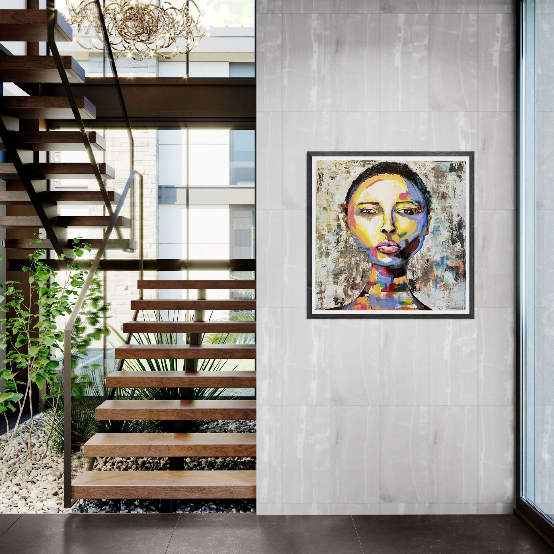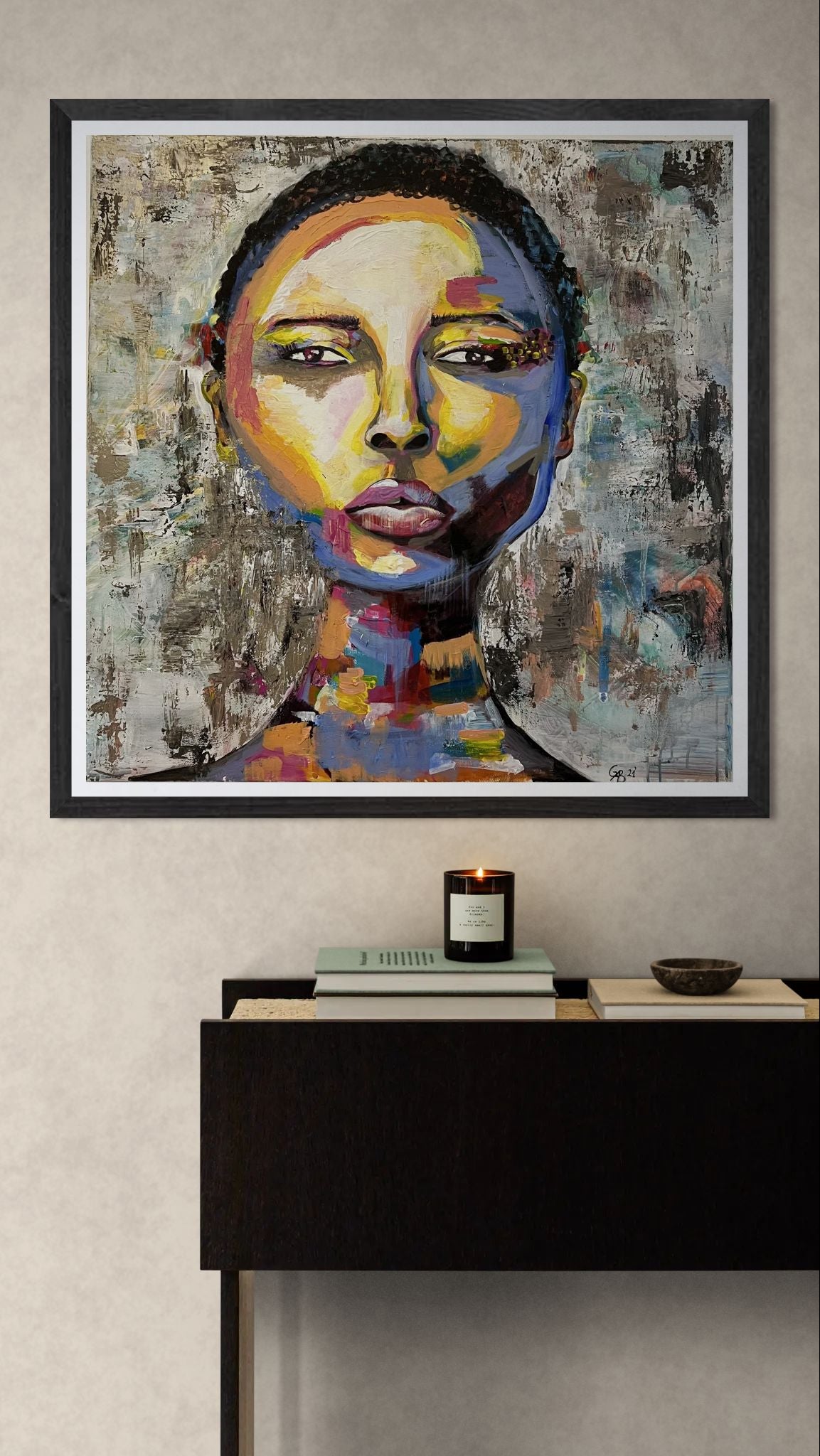 “Head” is one of Gabija Adele’s most striking works - a 90 × 90 cm acrylic on canvas portrait that fuses realism with abstract expressionism. The face emerges through bold layers of color and textured brushwork, conveying strength, vulnerability, and timeless human emotion.
