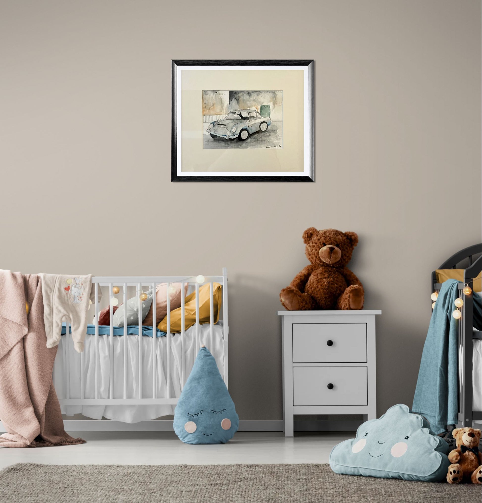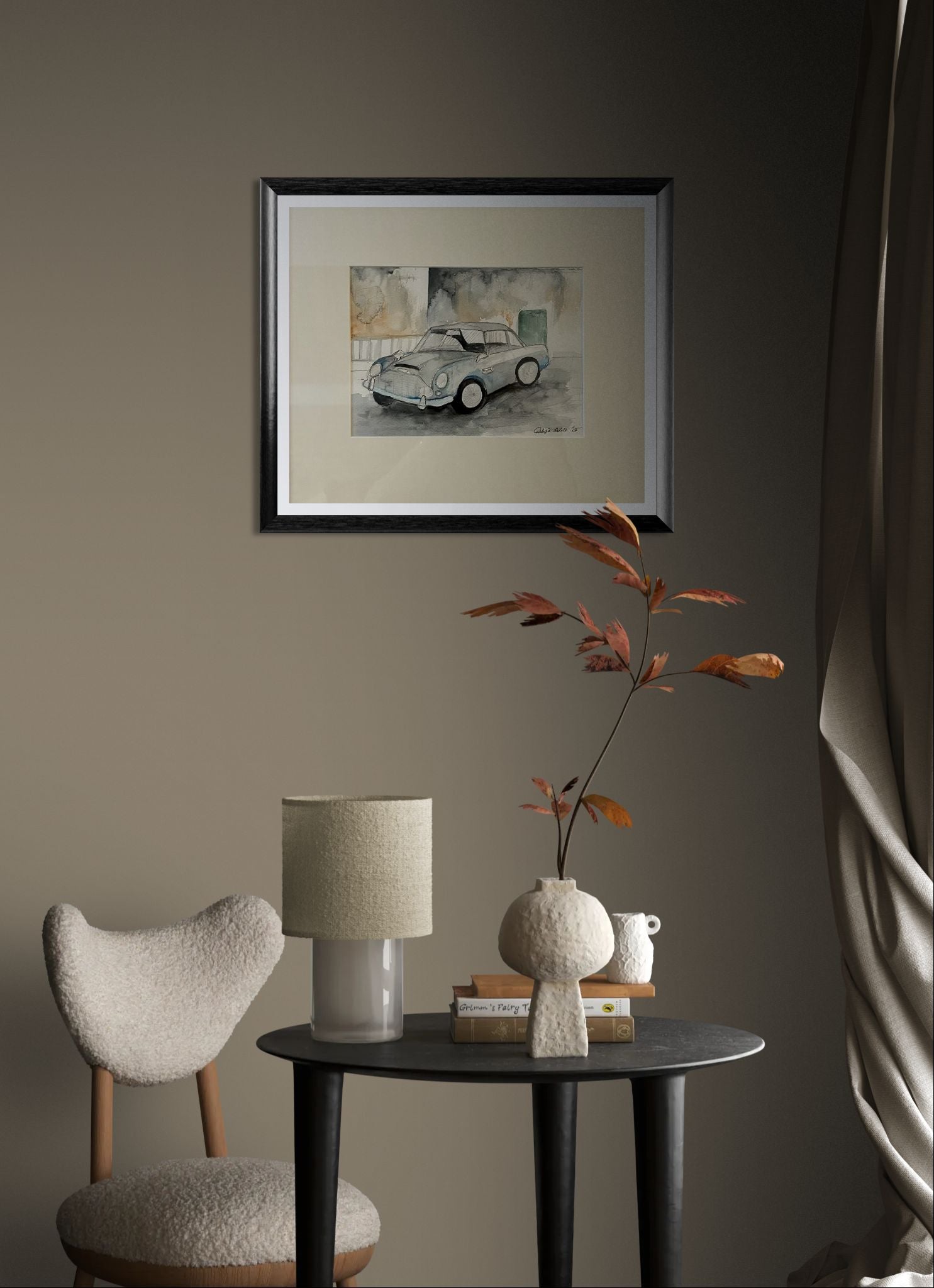 “James Bond Car” is a playful yet stylish interpretation of one of cinema’s most legendary icons. Executed with delicate watercolour brushwork, the painting captures the elegance and thrill of the classic car that defined an era.