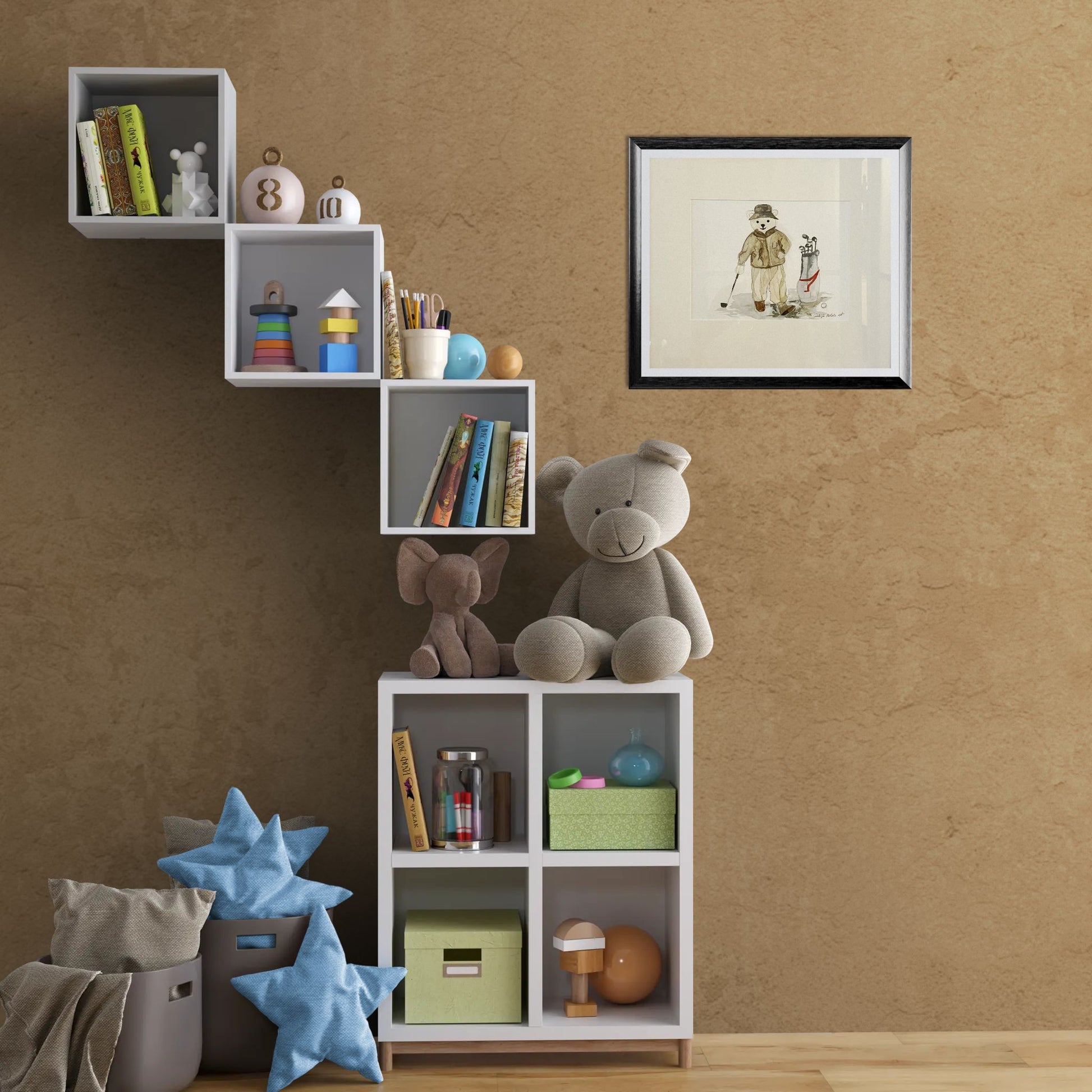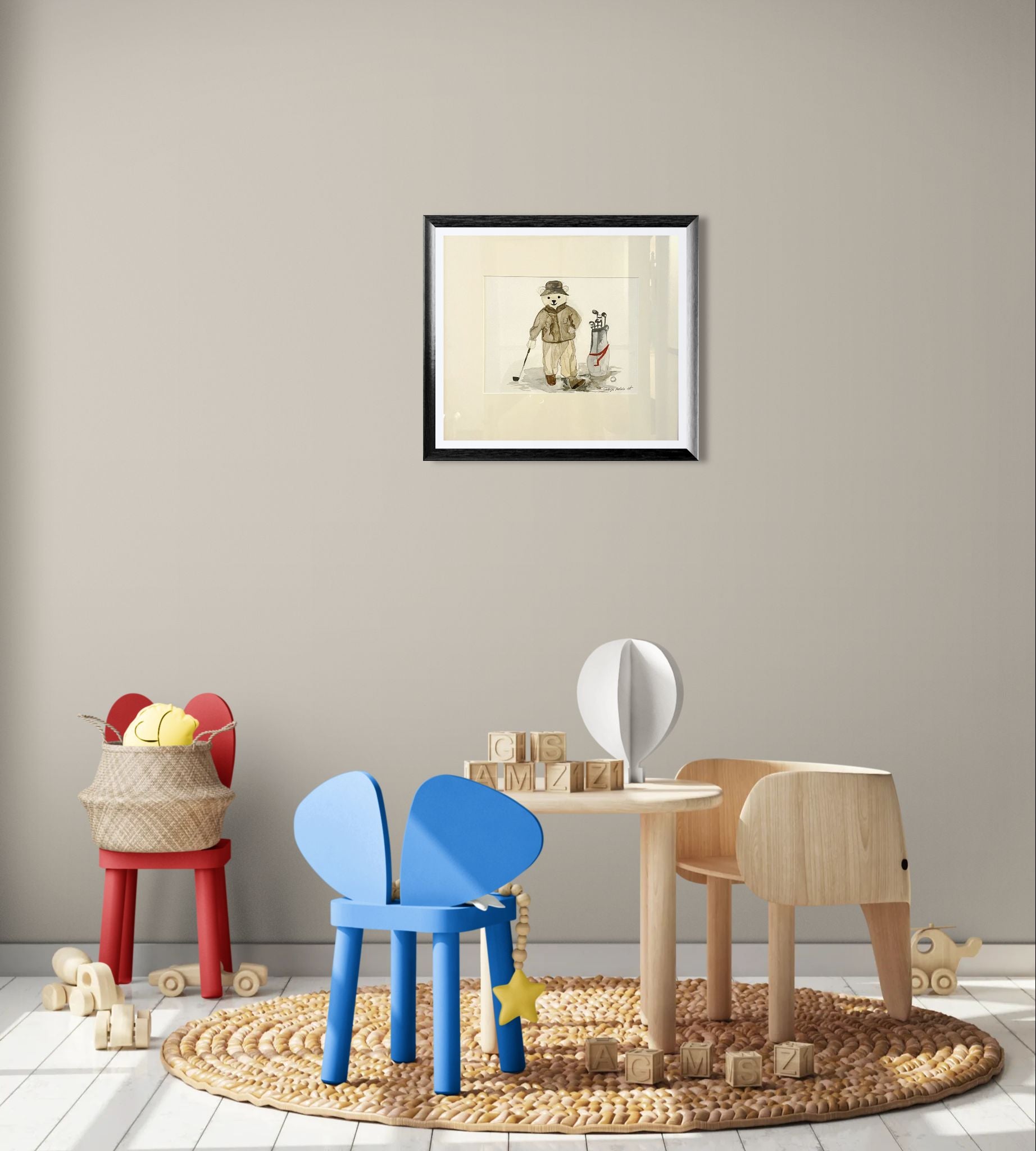 A delightful work for nurseries, children’s rooms, or as a nostalgic accent in more sophisticated interiors.