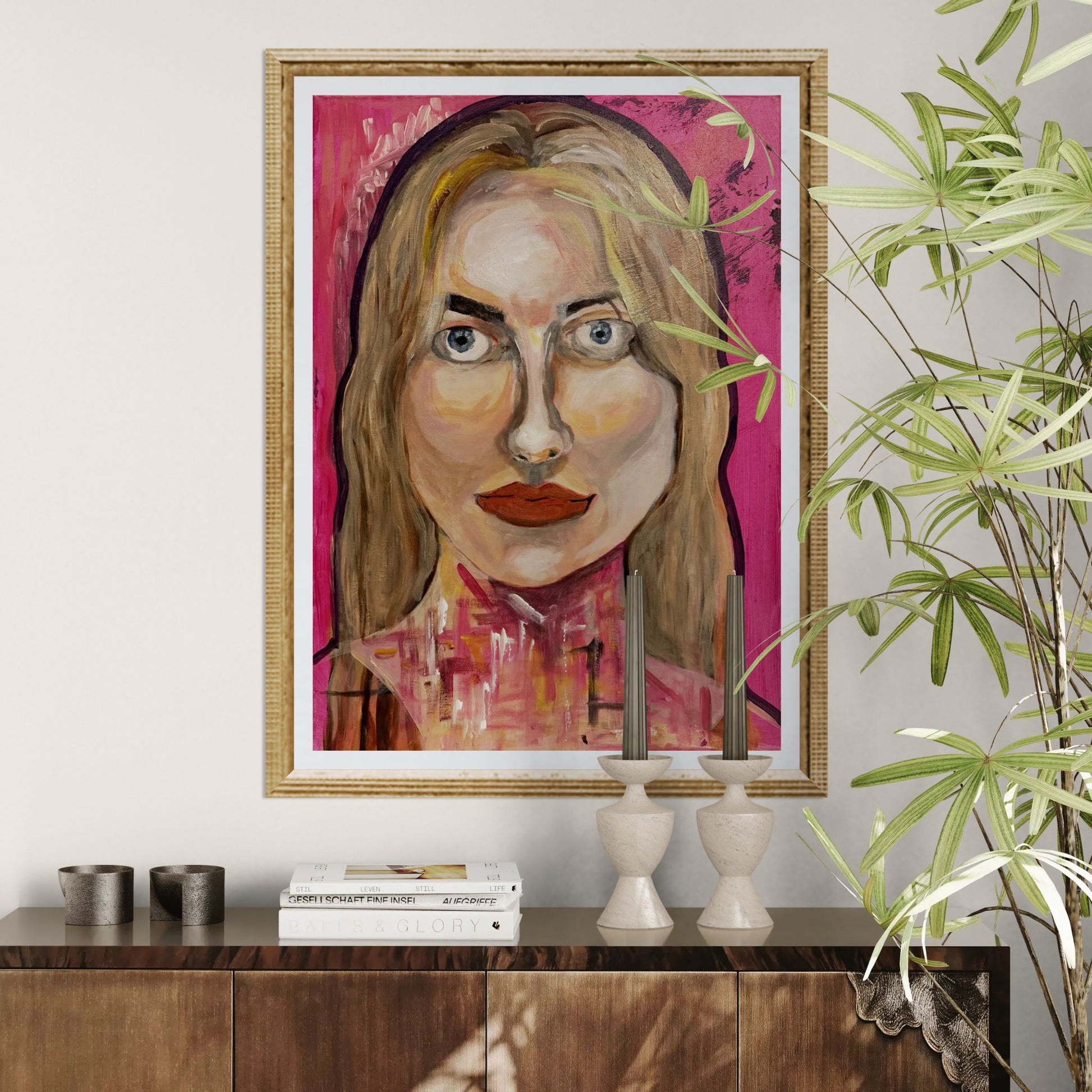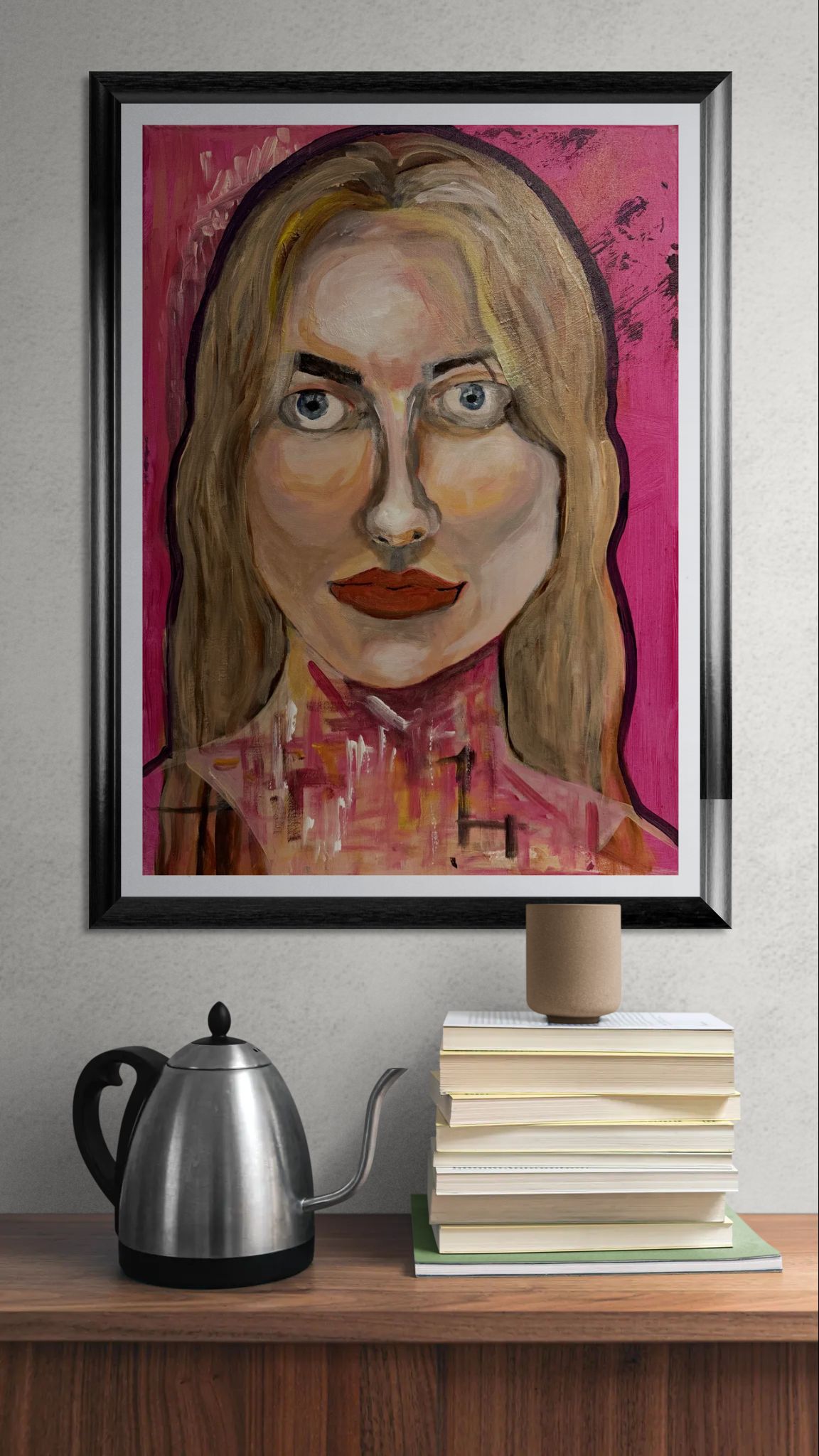 A vivid and captivating portrait that adds personality and edge to any space — contemporary yet timeless in its bold expression.